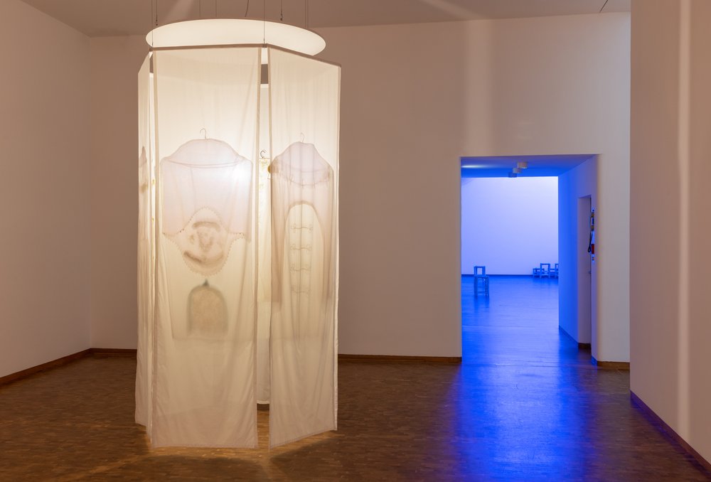 von Hermann Josef Hack sowie zwei kleine Skulpturen von Gereon Krebber, einen Leuchtkasten von Daniel Pflumm, einen Druck von Hans Salentin und eine Fotografie von Heidi Specker.