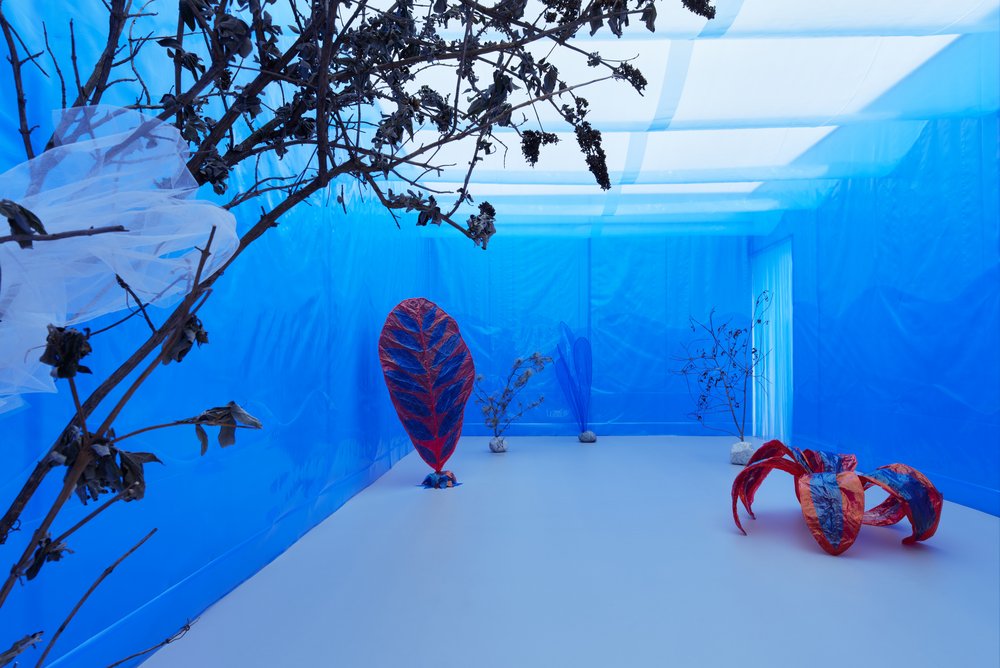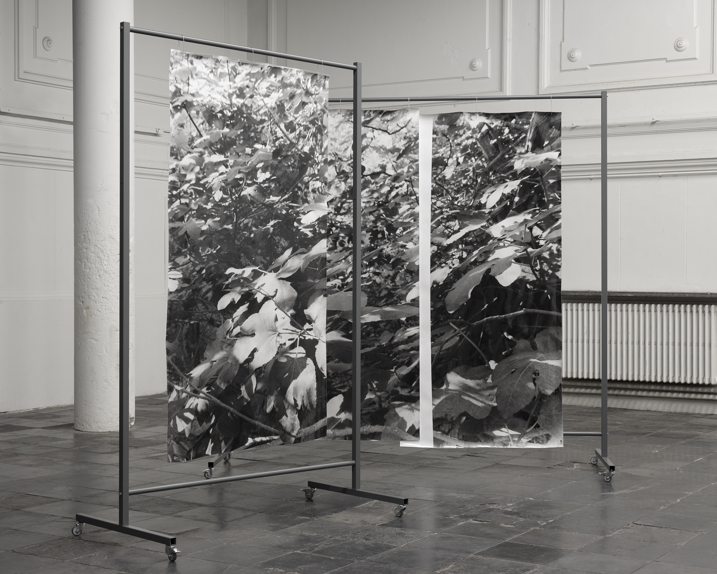 wahrnimmt und dokumentiert. Der Siebdruck von Susanne Kriemann wurde mit Pigmenten vom Gessenboden und von Restpflanzen erzeugt, die auf dem ehemaligen Gelände der Wismut AG in Sachsen gesammelt wurden und mit denen sie sich auch in ihrer Installation in der Ausstellung auseinandersetzt.